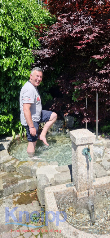Nach einer traumhaften Motorradtour bei bestem Wetter war die Abkühlung im hauseigenen Kneipp-Brunnen des Gasthofs Innerwalten genau das Richtige. Auch die nicht eingeschworene Kneippianer waren begeistert: Armbäder wurden mit Begeisterung durchgeführt und der Storchenschritt durch das kalte Wasser sorgte für wohltuende Erfrischung und gute Laune.